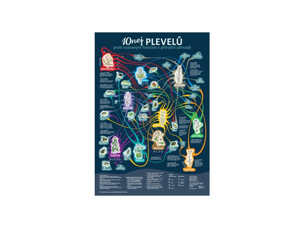 10 NEJ PLEVELŮČeský a slovenský plakát o deseti plevelech proti nezvaným hostům v přírodní zahradě.Je libo nálev z pampelišek, jíchu z kopřiv nebo odvar z vratiče? Dozvíte se, jak na to, ale i mnoho dalšího o tom, jak plevele využít pro vlastní blaho i k ozdravení vaší zahrady.