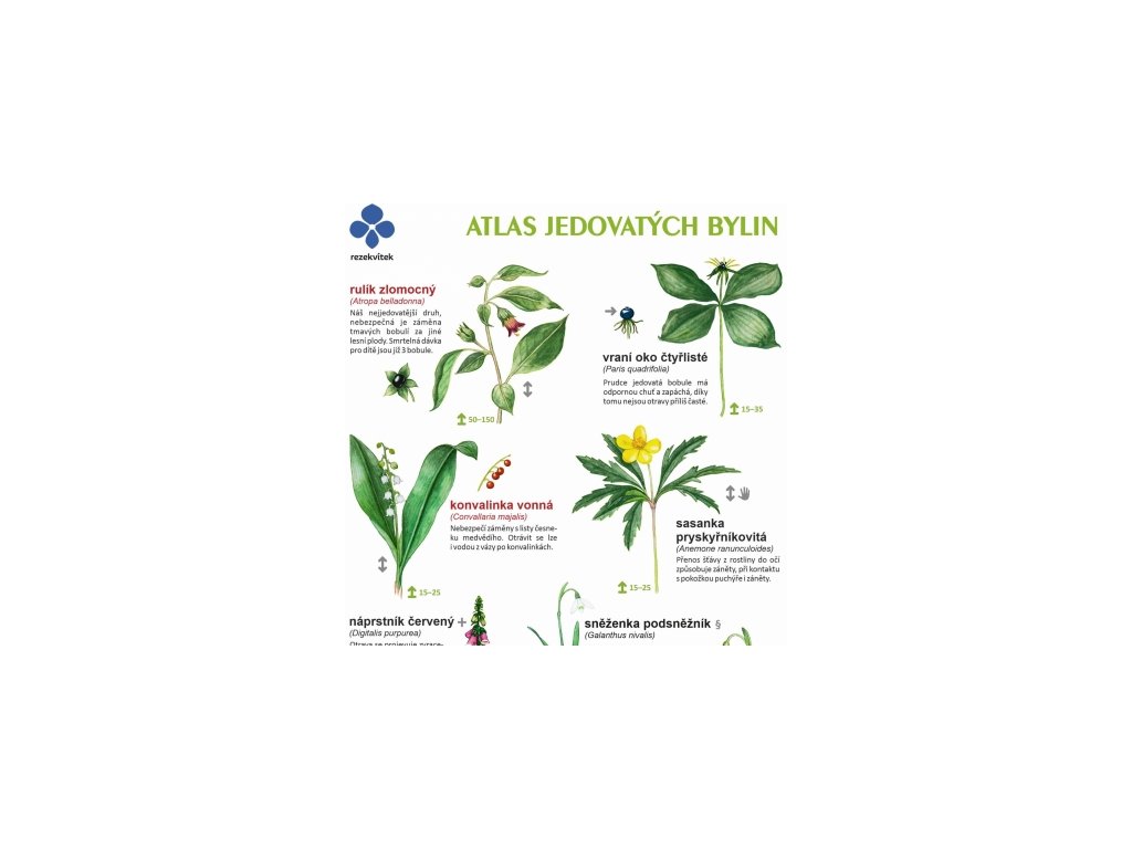 Laminované leporelo s obrázky jedovatých bylin, které můžete potkat na svých toulkách českou přírodou. Mohou s ním pracovat děti i dospělí.Podle obrázků a stanoviště můžete rostliny snadno určit. U každé byliny se dozvíte míru jedovatosti, která část je jedovatá, dále příznaky a průběh otravy a zásady první pomoci. Určovací atlas vychází v podobě čtyřchlopňového leporela s praktickou voděodolnou úpravou o výšce 24 cm. Vydal Rezekvítek