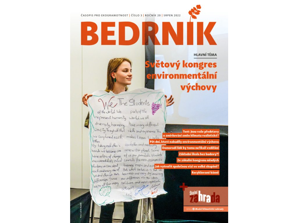 Hlavní téma: Světový kongres environmentální výchovyTest: jsou vaše představy o zmírňování změn klimatu realistické? Pět dní, které nabudily environmentální výchovuDomorodí lidé by tomu neříkali vzděláníZákladní škola bez budovy?!Ze zákulisí kongresu mladýchJak vytvořit společnou vizi ve velké skupině? Recyklované básně+školní zahrada: Model klimatické zahrady