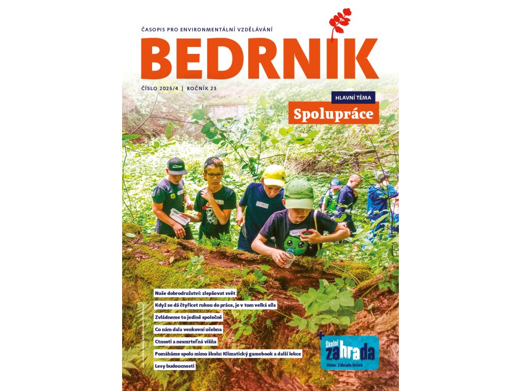 Bedrník č. 4, 2025, roč. 23, SpolupráceNaše dobrodružství zlepšovat světKdyž se dá čtyřicet rukou do práce, je v tom velká sílaZvládneme to jedině společněCo nám dala venkovní učebnaCtnosti a nesmrtelná višňaPomáháme spolu mimo školu: Klimatický gamebook a další lekceLesy budoucnosti+ školní zahrada - Zahrada léčivá