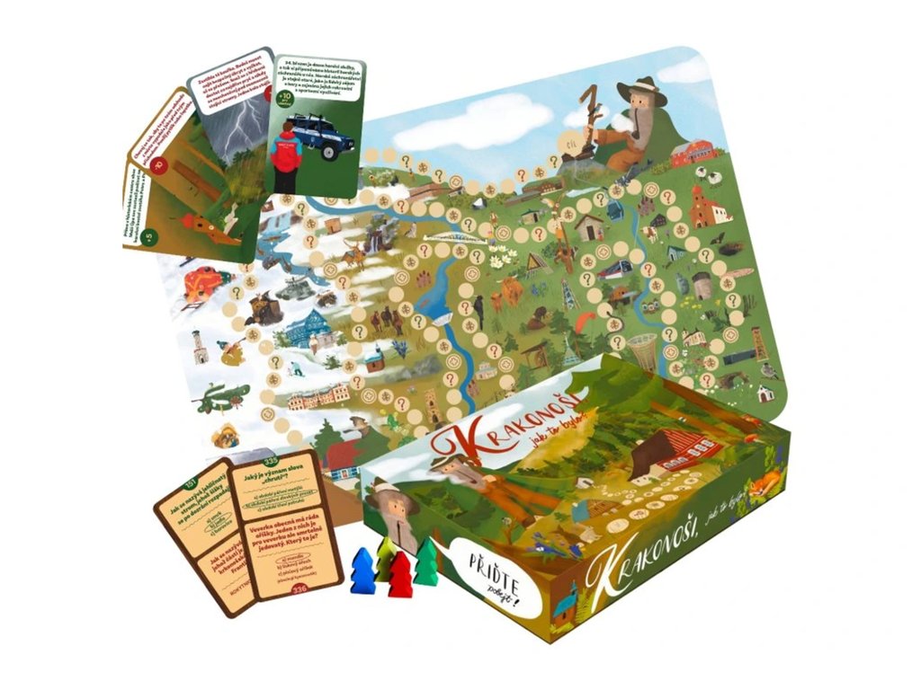 Vědomostní a dobrodružná desková hra o Krkonoších vás provede přírodou i historií těchto hor. Prostřednictvím vědomostních otázek a dobrodružných situací zažijete Krkonoše jako nikdy předtím.Naučte se něco nového – zajímavá fakta o přírodě, historii a kultuře Krkonoš.Inspirujte se – tipy na krásná a možná i méně známá místa.Získejte informace – praktické rady pro dobrodružství na horách.Cílem hry je nasbírat co nejvíce bodů, ať už správným zodpovězením kvízových otázek, překonáním různých situací nebo rychlostí do cíle. Kombinujte vědomosti, štěstí, strategii a staňte se vítězem!Hra obsahuje:1x herní deska217 karet – otázky143 karet – situace4x figurky1x hrací kostka1x pravidla hryHra je určena pro 2 až 4 hráče ve věku 12+Hra byla připravena s maximální péčí, přesto nedokážu 100% vyloučit, že neobsahuje nějakou tu drobnou chybku. Nikdo nejsme neomylný, a proto když by se tak stalo, vás prosím o shovívavost.Užijte si hru!Autor: Michaela Cichrová @necosihrejIlustrace: Denisa Klimentová @but_first_drawGrafika: Hana Plachetková @hanapg_designerVyrobeno s láskou a respektem k horám 2024.