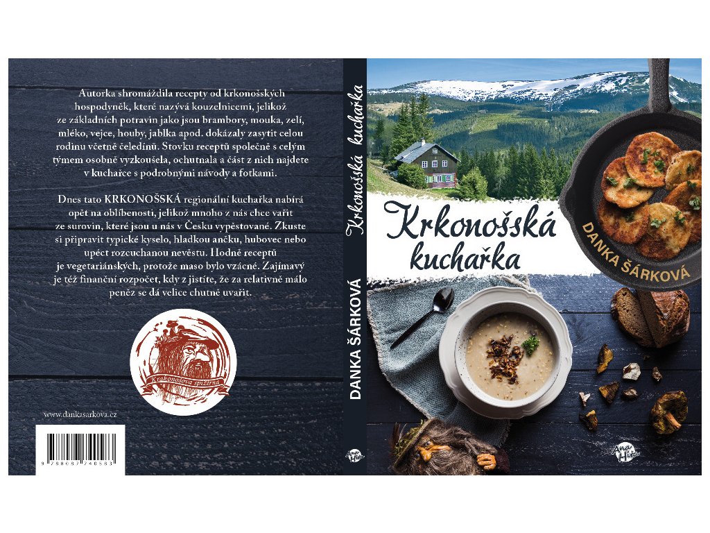 Krkonošská kuchařka Danka Šárková Autorka shromáždila recepty od krkonošských hospodyněk, které nazývá kouzelnicemi, jelikož ze základních potravin jako jsou brambory, mouka, zelí, mléko, vejce, houby, jablka apod. dokázaly zasytit celou rodinu včetně čeledínů. Stovku receptů společně s celým týmem osobně vyzkoušela, ochutnala a část z nich najdete v kuchařce s podrobnými návody a fotkami.Dnes tato KRKONOŠSKÁ regionální kuchařka nabírá opět na oblíbenosti, jelikož mnoho z nás chce vařit ze surovin, které jsou u nás v Česku vypěstované. Zkuste si připravit typické kyselo, hladkou ančku, hubovec nebo upéct rozcuchanou nevěstu. Hodně receptů je vegetariánských, protože maso bylo vzácné. Zajímavý je též finanční rozpočet, kdy zjistíte, že za relativně málo peněz se dá velice chutně uvařit.