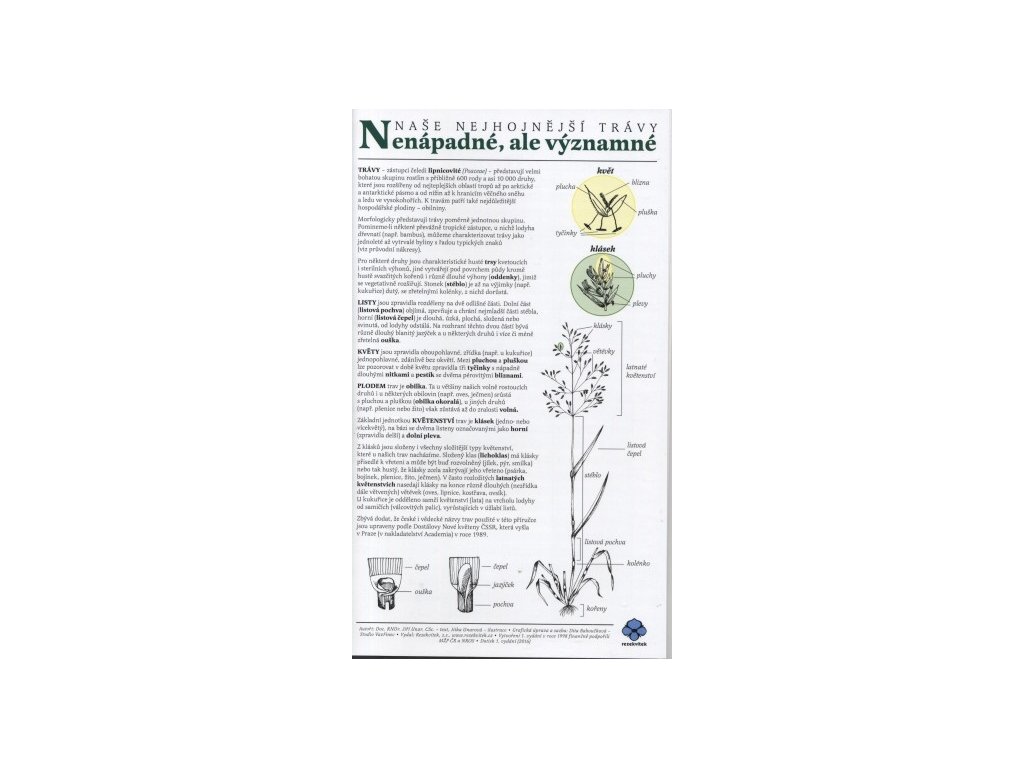 Klíč k určování trav. Trávy jsou nenápadné, ale významné rostliny, tvořící značnou část skladby bylinného patra. Podle tohoto klíče určíte trávy stepní, mokřadní, lesní... zkrátka všechny, které můžete v naší přírodě najít.12 stran perokreseb a barevných fotek. Voděodolné - vhodné do terénu.Vydal: Rezekvítek.